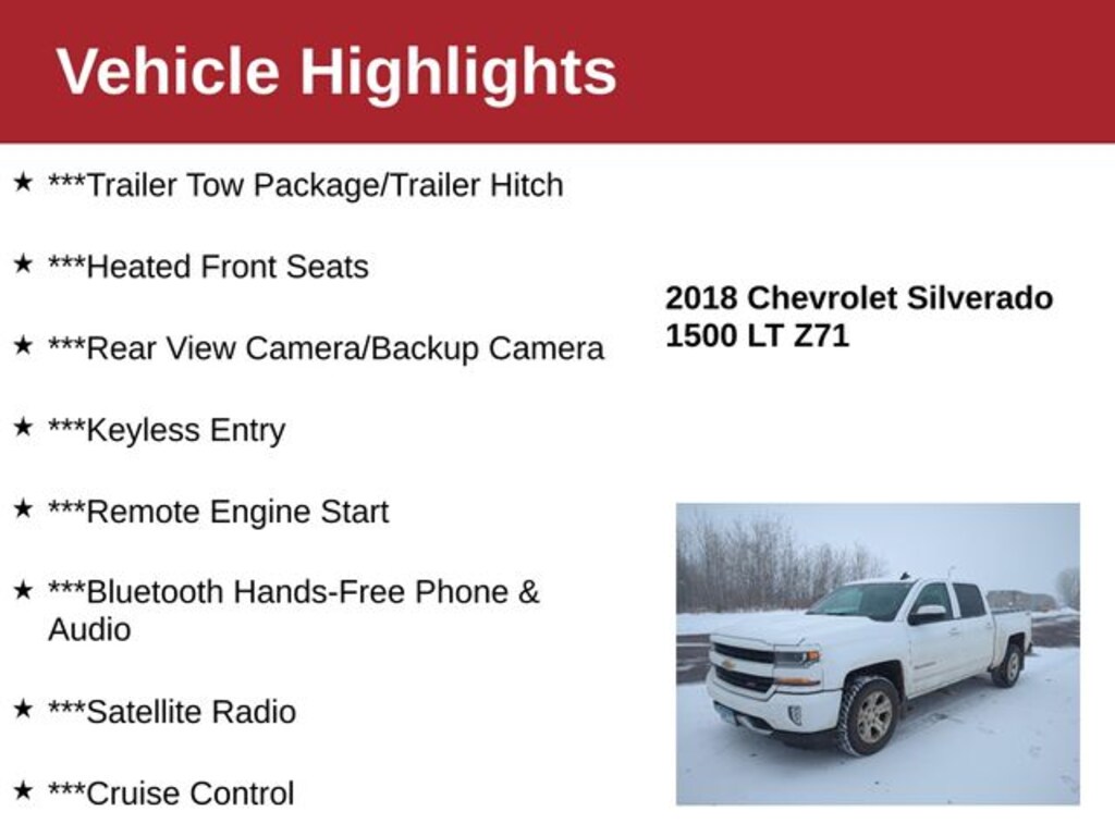 ***Preferred Equipment Group 2LT***Off-Road Suspension Package***Trailer Tow Package***Backup Camera***8" Touchscreen Display***Bluetooth Hands-Free***Satellite Radio***Cruise Control***Keyless Entry***Remote Engine Start***Dual-Zone Automatic Climate Control***Heated Front Seats***Accident Free Auto Check***One-Owner***Local Trade-In***18" Bright Machined Aluminum Wheels***