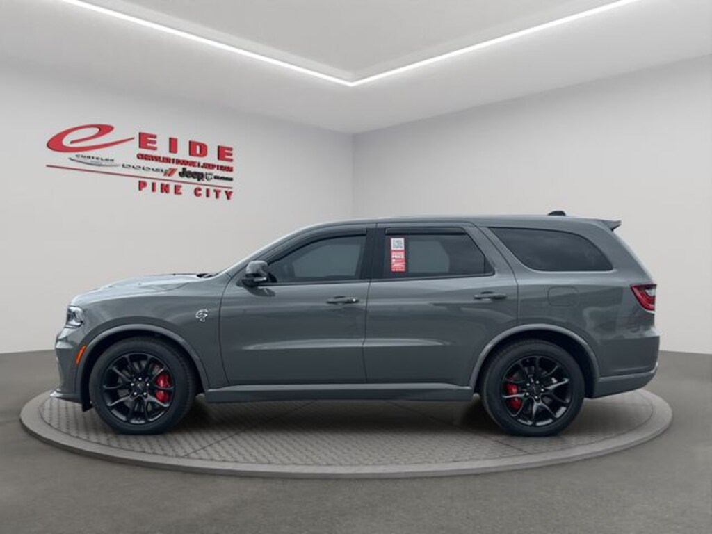 Discover the beastly 2025 Dodge Durango SRT Hellcat in menacing Destroyer Gray Clearcoat, a one-owner accident free gem with spotless Auto Check history. Unleash the supercharged 6.2L HEMI V8 with savage AWD grip that turns every drive into a thrill ride. Enjoy three rows of pure luxury with 3rd row seating, heated and cooled front seats, heated second row seats, and a heated steering wheel that laughs at cold mornings. Open sky vibes pour in through the sunroof while dual zone automatic temperature control keeps everyone happy. Tech and safety dominate with Uconnect 5 Nav on a 10.1 inch display, seamless Apple CarPlay and Android Auto, Bluetooth hands free, blind spot alert, parking assist, power liftgate, keyless entry and start, and rain sensitive wipers. The trailer tow package is ready for weekend hauls, and sharp 20 inch machine face wheels finish the aggressive stance. This loaded Hellcat Durango is muscle wrapped in family comfort and vanishing fast!